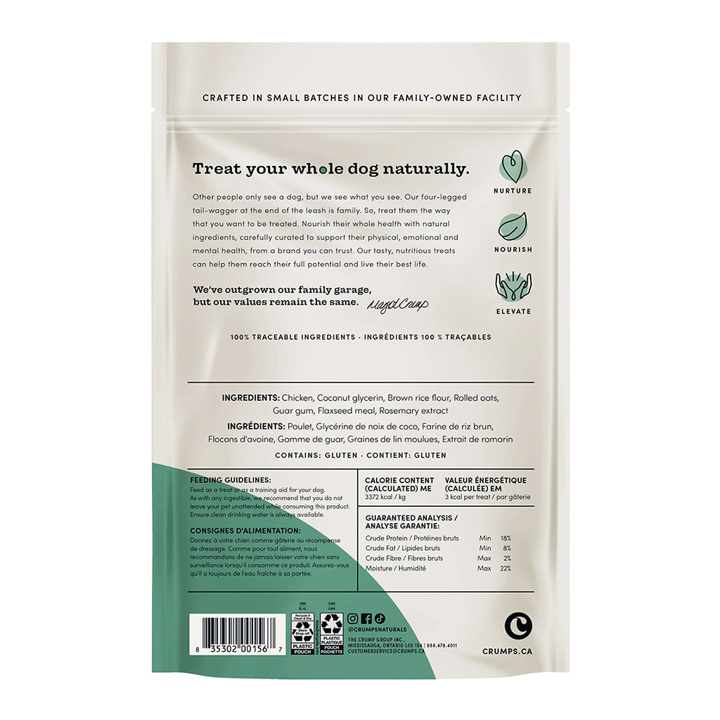Each soft and chewy treat contains all natural ingredients starting with North American Chicken making it the perfect high protein snack for dogs of all ages and sizes.