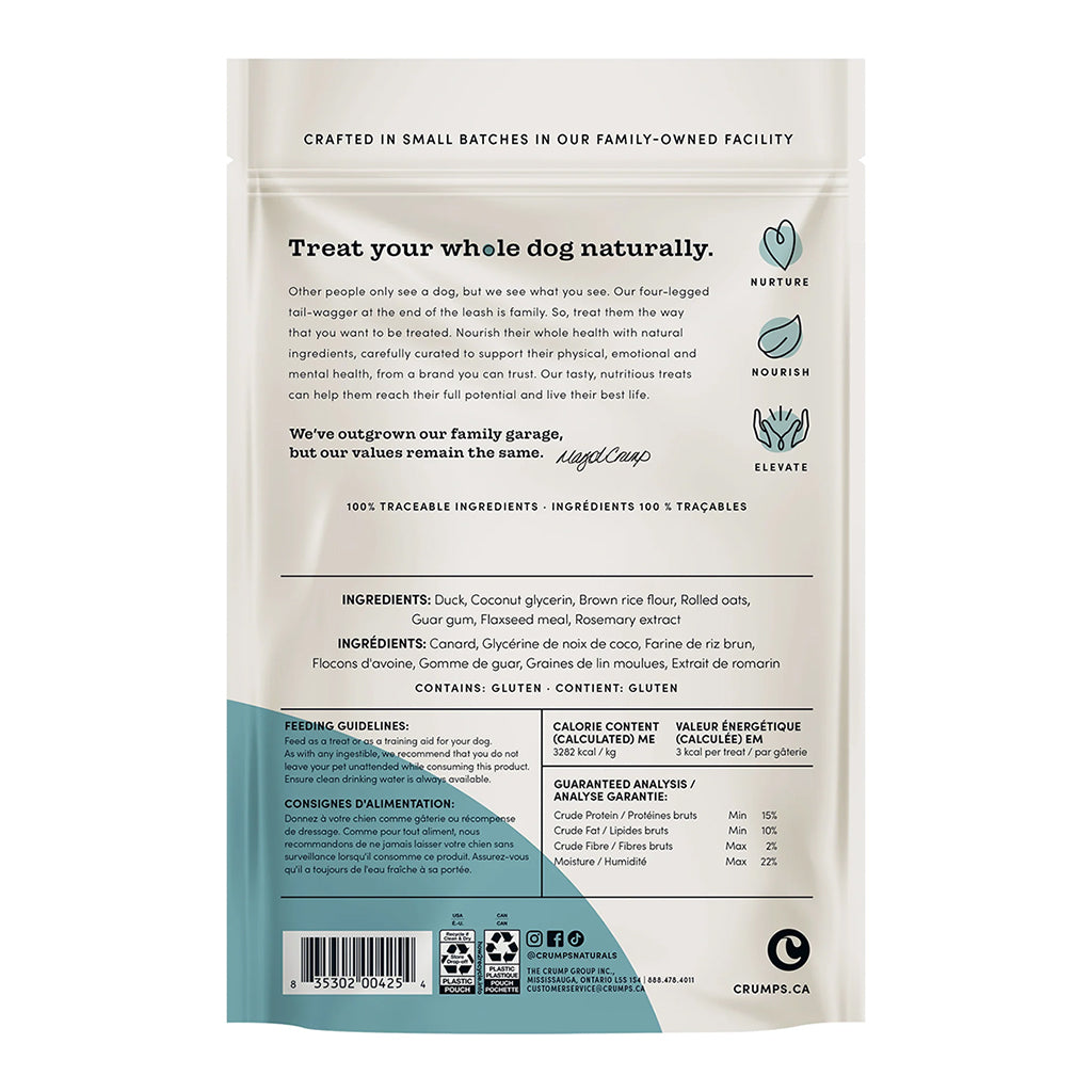 Each soft and chewy treat contains all natural ingredients starting with Duck making it the perfect high protein snack for dogs of all ages and sizes. Duck is an alternative protein ideal for dogs with specific allergies or food sensitivities.