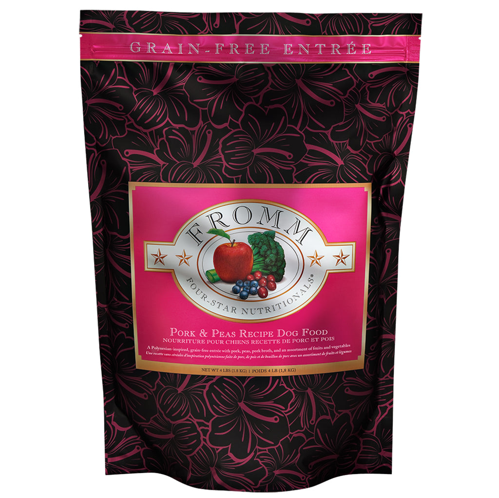 A Polynesian-inspired entrée with pork, peas, pork broth, and an assortment of fruits and vegetables
